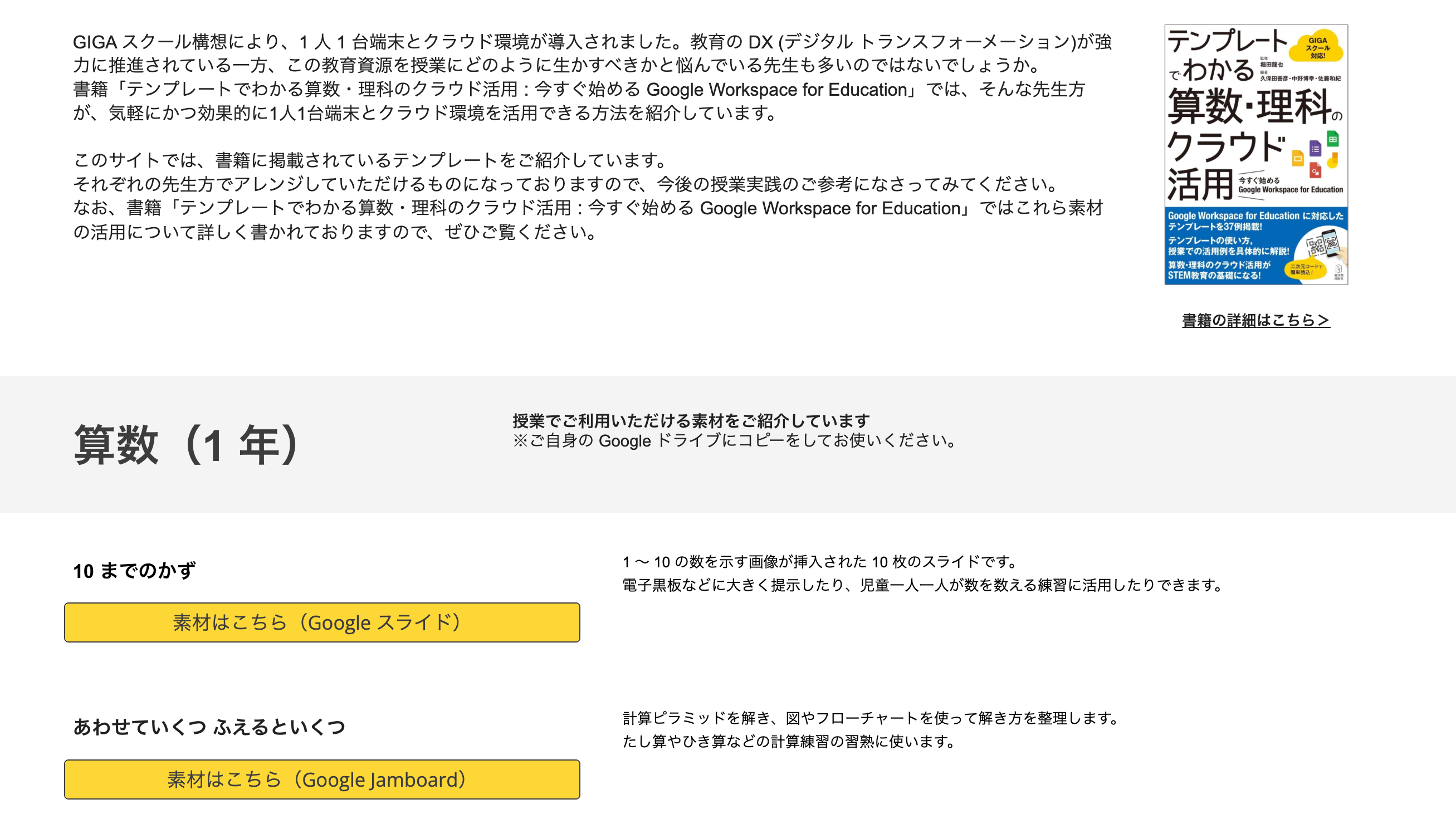 こちらは、算数・理科に特化したテンプレートを提供しています。実際書籍で販売されているものです。