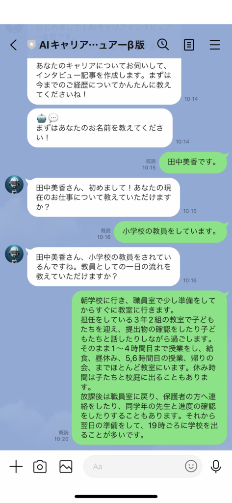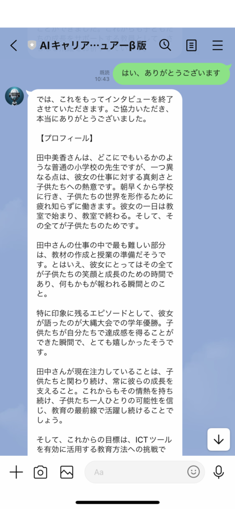 AIのインタビュアーとはいえ、きちんと文章を出力してくれます。ぜひ気軽に試してみてくださいね!