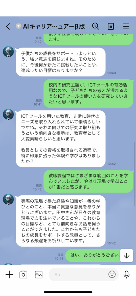 今回は、先生方をはじめとした大人の方々向けに、自分のキャリアについてインタビューしてくれる「AIキャリアインタビュアーβ版」を開発しリリースしました。
