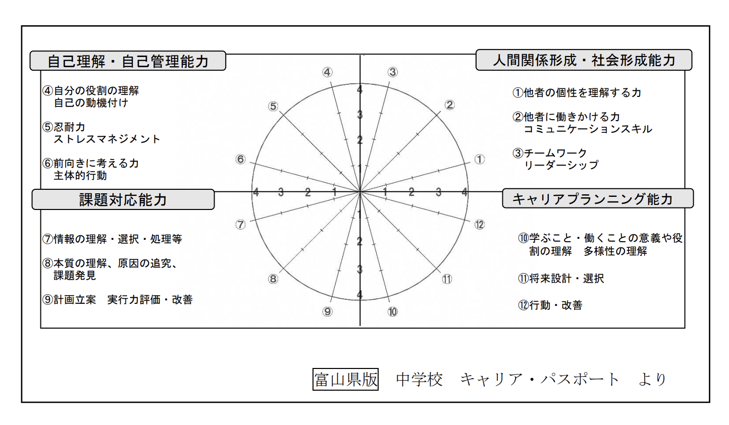 富山県のキャリア教育の取り組み:キャリア・パスポートに自己評価のレーダーチャート