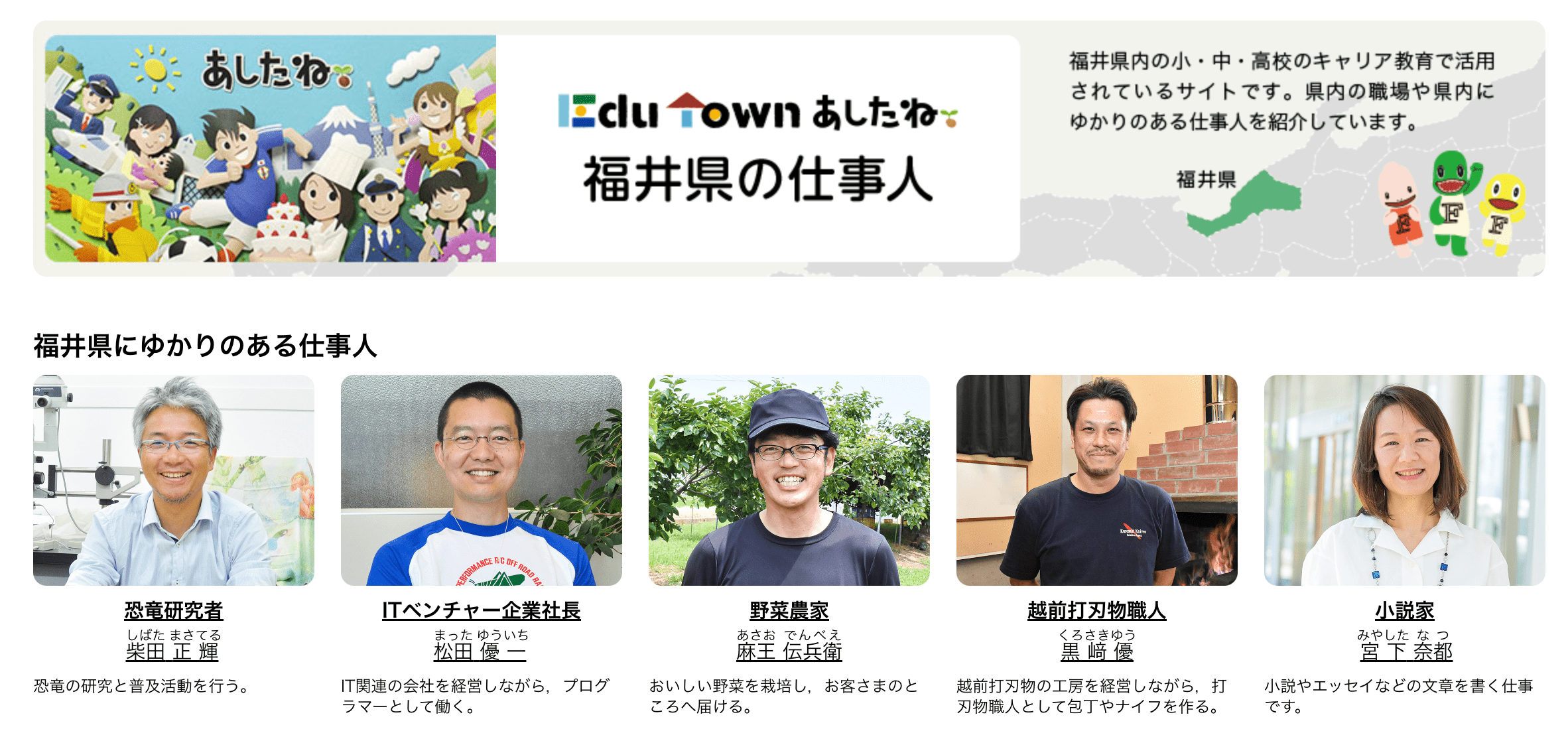 福井県のキャリア教育の取り組み:EduTownあしたねを活用して仕事人を紹介