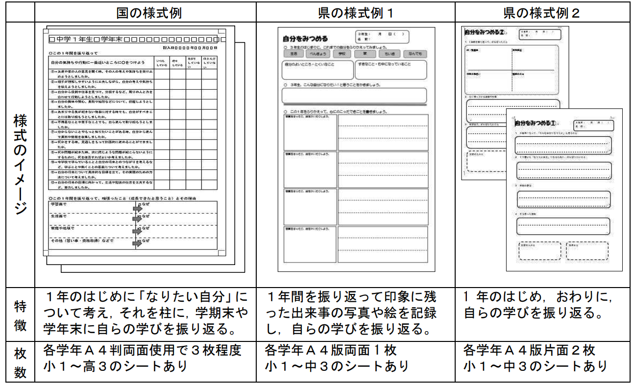 冒頭で説明したように、キャリア・パスポートは子ども達が「見通しを立て、振り返る」活動について記録していくものです。長野県では、国の様式例を活用したり、県の様式例を参考にしつつ、地域や学校の実態に応じ、柔軟に工夫することが推奨されています。