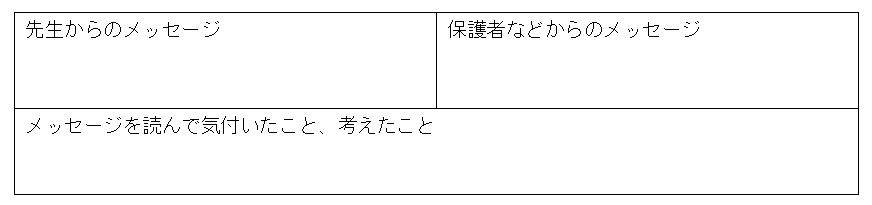 また、1年の振り返りの最後のメッセージの欄では先生からのメッセージのほかに「( )からのメッセージ」という項目が設けられています。この項目については、友人、保護者、部活動の顧問等、メッセージをもらう相手を生徒に選ばせることによって主体的に動いてもらうための工夫する項目となっています。