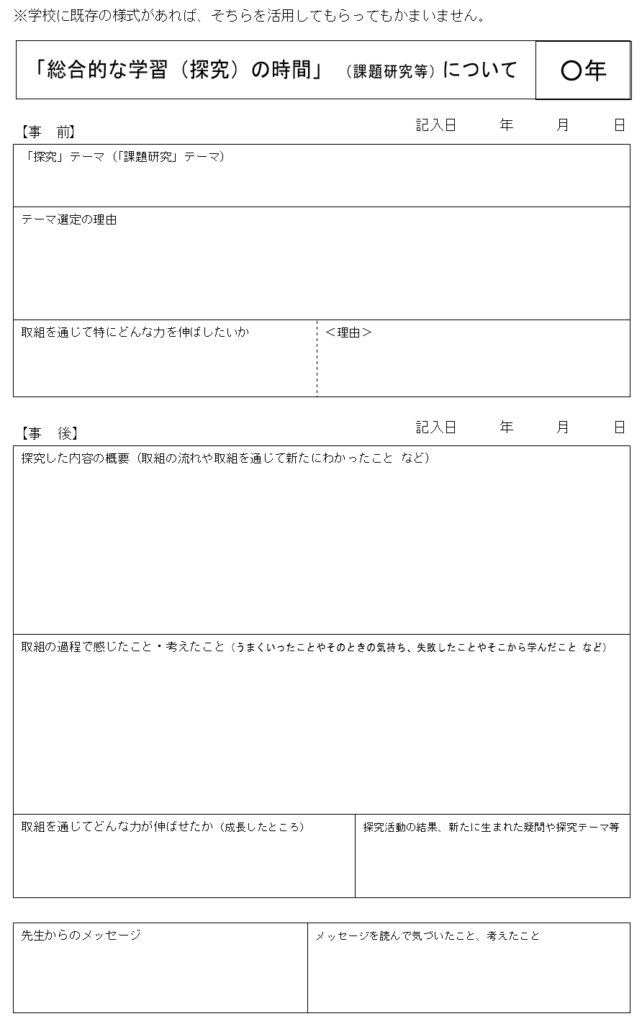 キャリア・パスポートの質問例~高等学校編~