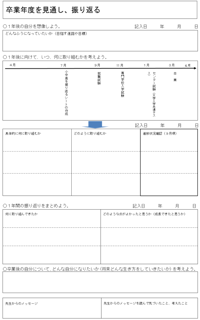 さらに、就職や進学を見据え、卒業年度を見通し、振り返る項目も提示されています。