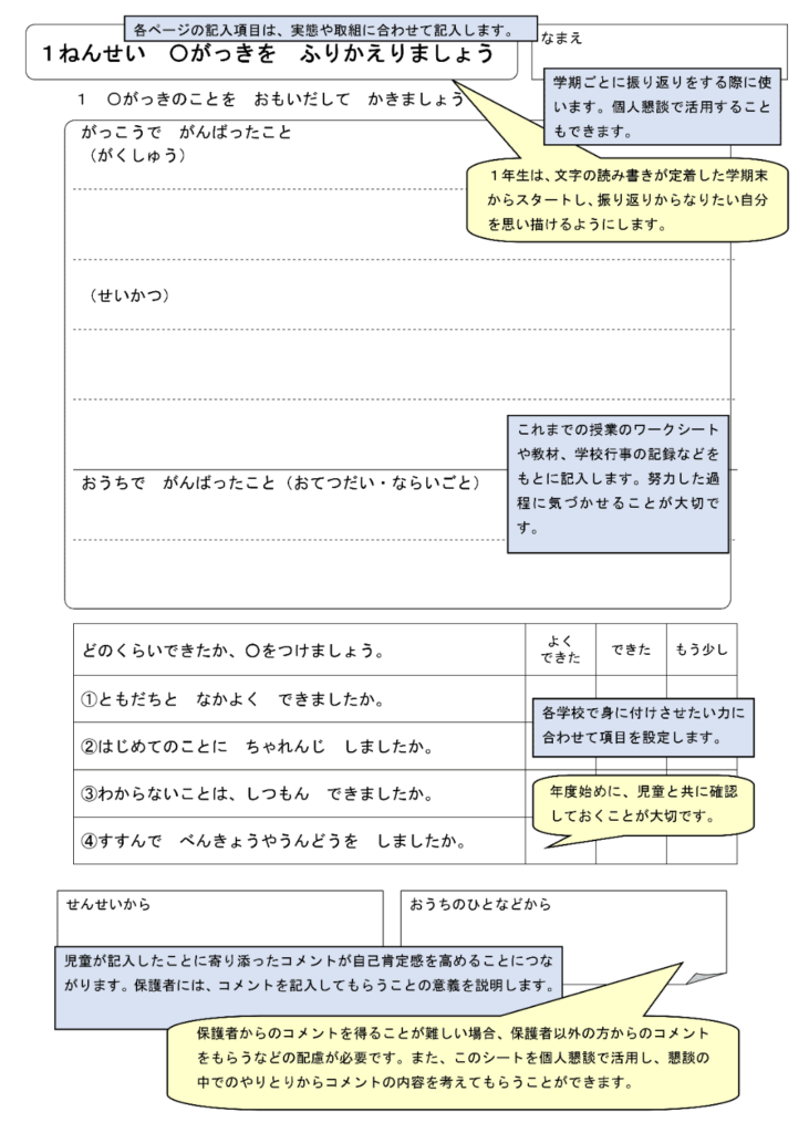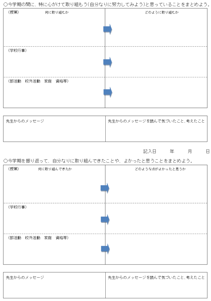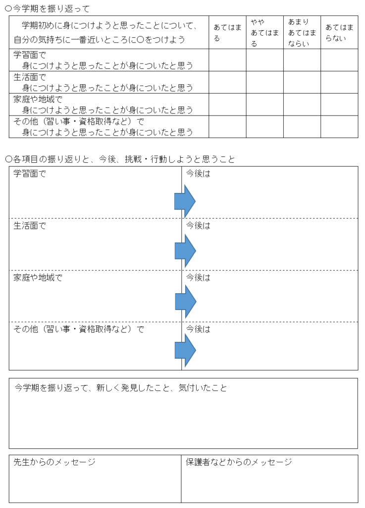 そして、学期の振り返りに関しては最後に先生からと保護者からのコメント欄があるという構成になっています。