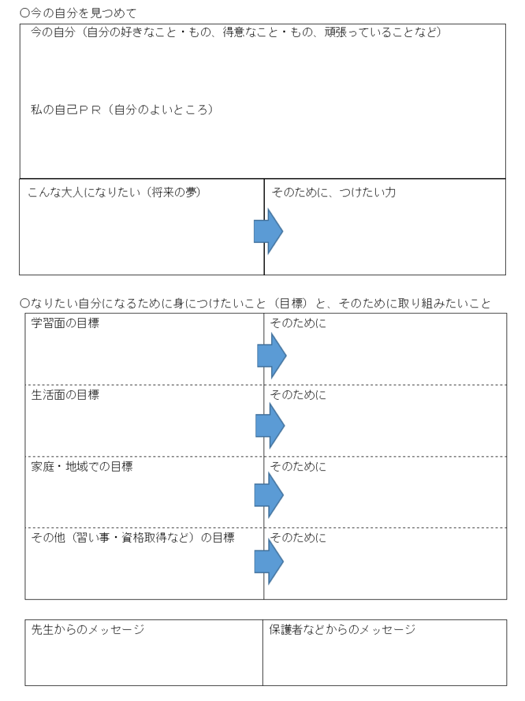 そして、「みんなのためにがんばりたいこと」というこうもくもあり、自分自身のことだけでなく、周りの人のためになのをしたいかということも考えさせる項目も追加されています。