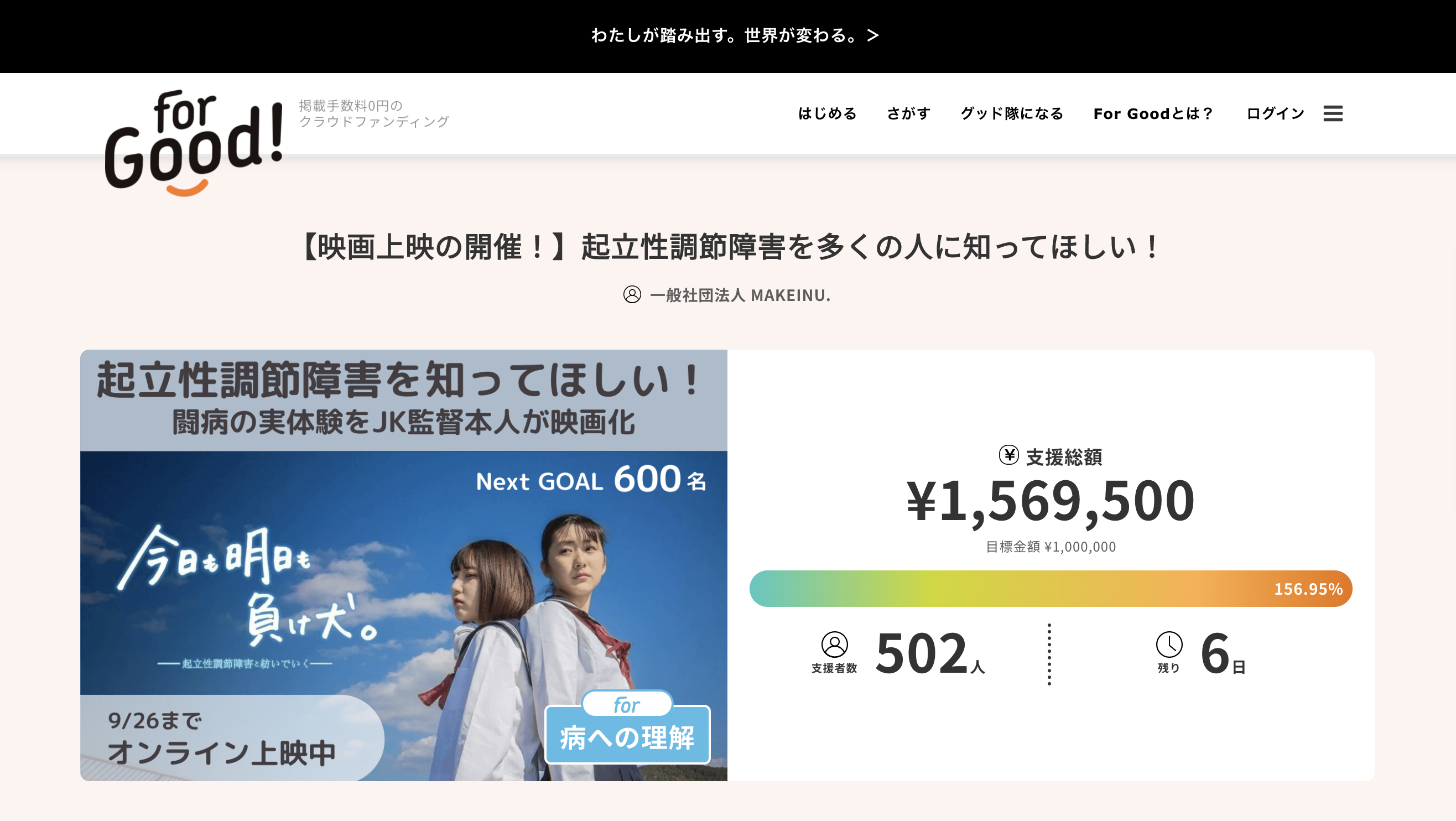 起立性調節障害という病気について以前ご紹介しましたが、その病気の当事者である西山夏実さんが監督として制作した映画「今日も明日も負け犬。」が現在オンライン上映を行なっています。