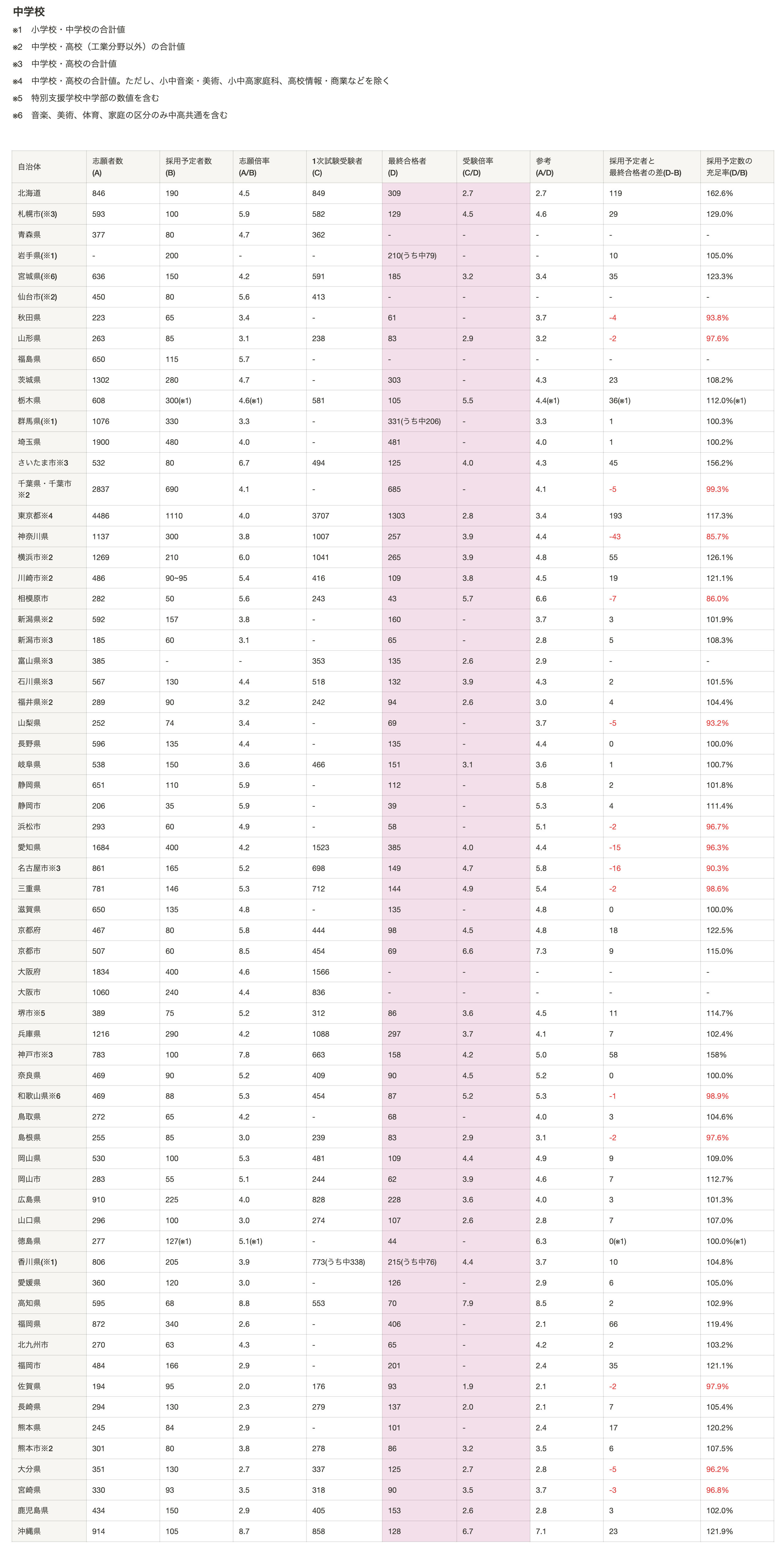 全国で行われている教員採用試験について、各地の結果をまとめました。