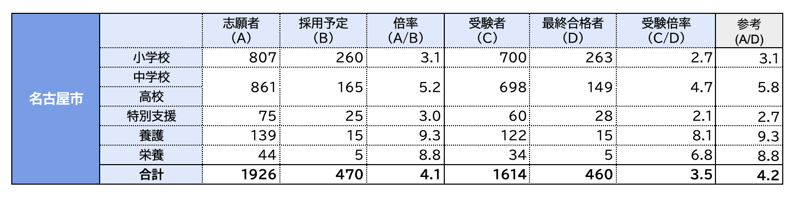 出典:令和4年度実施 名古屋市公立学校教員採用選考試験 最終選考結果