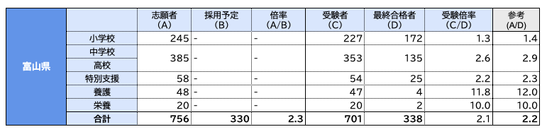 富山県の教員採用試験の状況