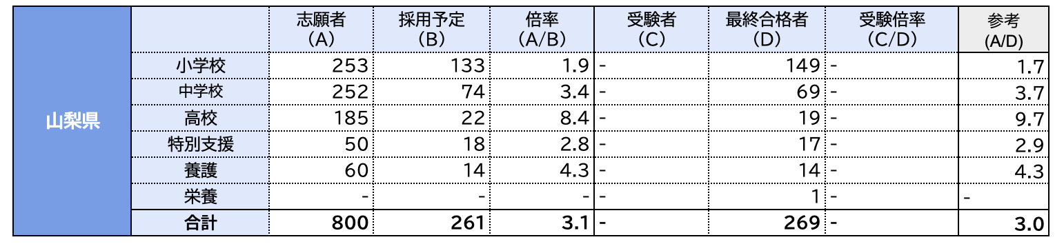 山梨県の教員採用試験の状況