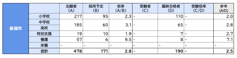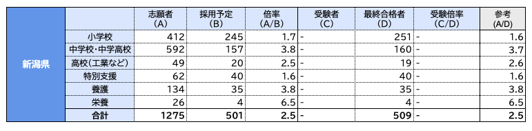 出典:令和5年度(令和4年度実施)新潟県公立学校教員採用選考検査について