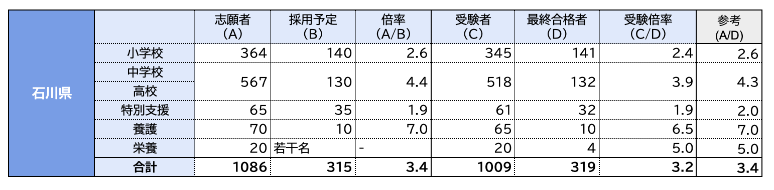 出典:令和5年度 石川県公立学校教員採用候補者選考結果