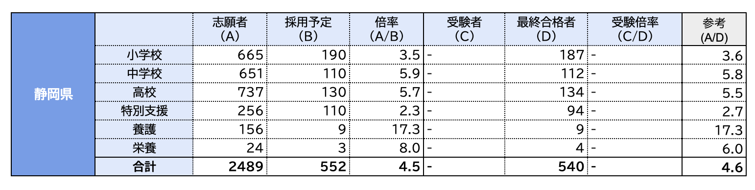 静岡県の教員採用試験の状況