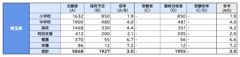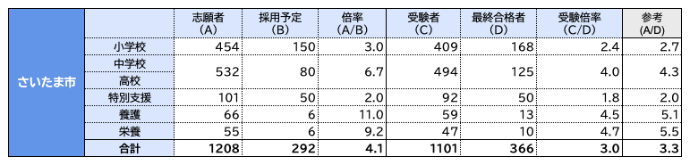 出典:令和5年度採用さいたま市立学校教員採用選考試験結果について