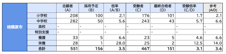 出典:令和4年度実施 相模原市立学校教員採用候補者選考試験 採用候補者名簿A登載者発表