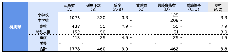 出典:令和5年度採用群馬県公立学校教員第2次選考合格者