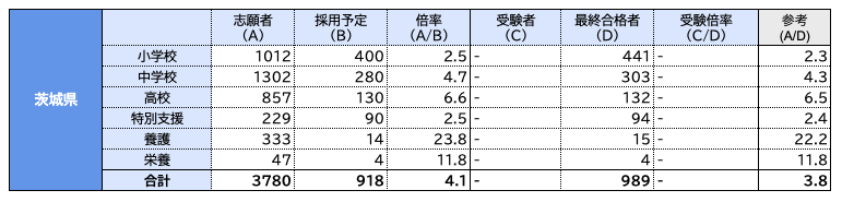 出典:令和5年度採用茨城県公立学校教員選考試験第2次試験及び実習助手選考試験の合格者発表について