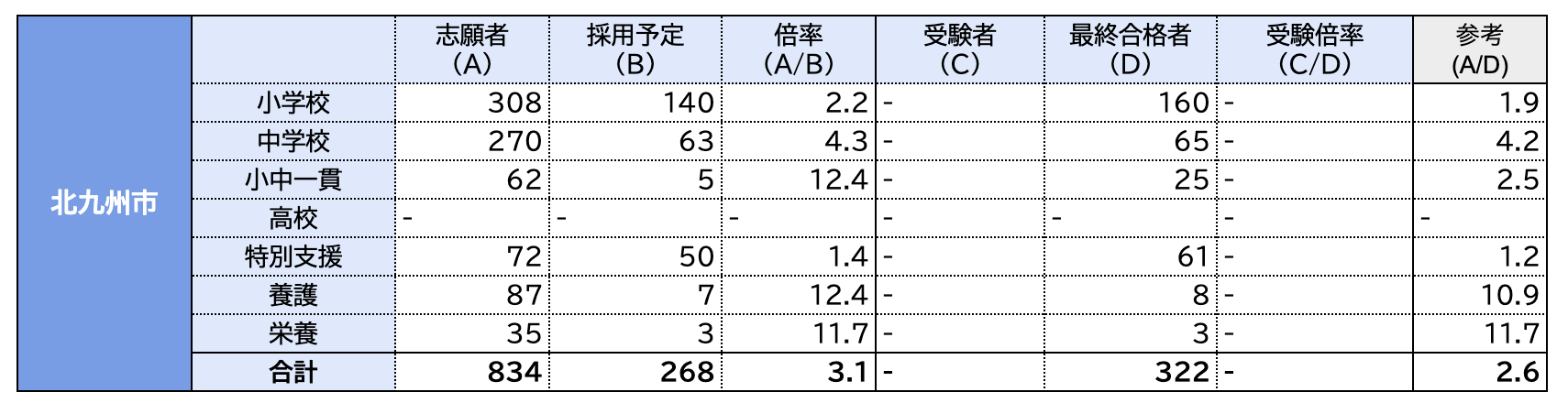 出典:令和5年度(4年度実施) 北九州市公立学校教員採用候補者選考第二次試験合格者