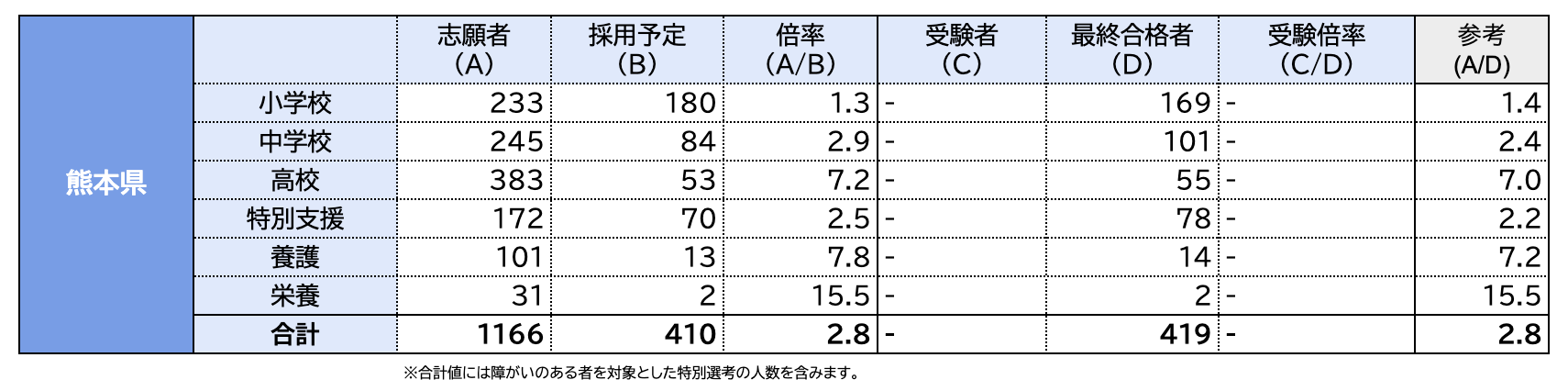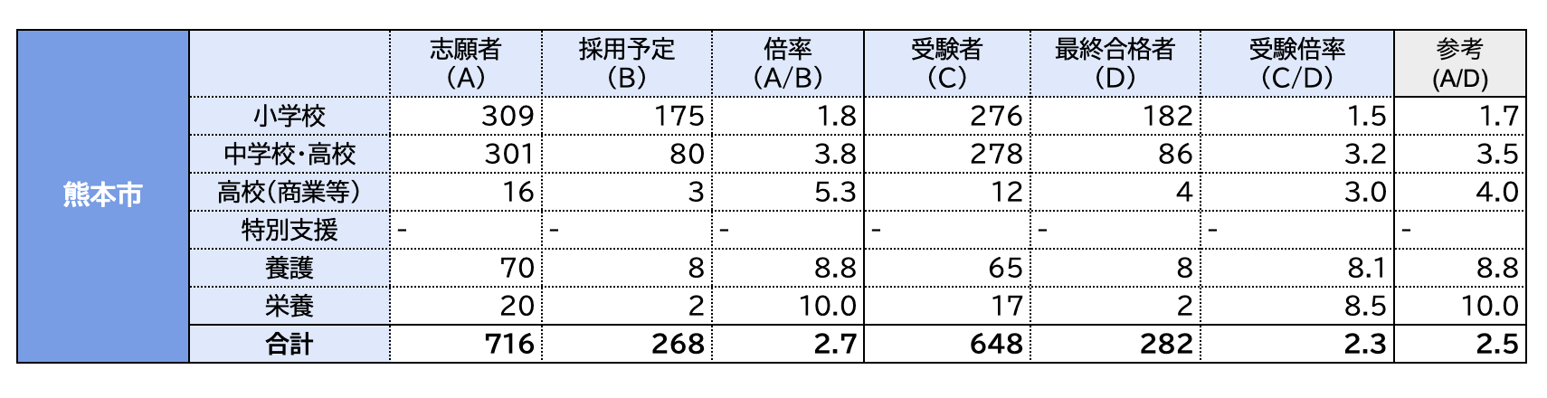 出典:令和5年度(2023年度) 熊本市立学校教員採用選考試験 実施状況(最終)