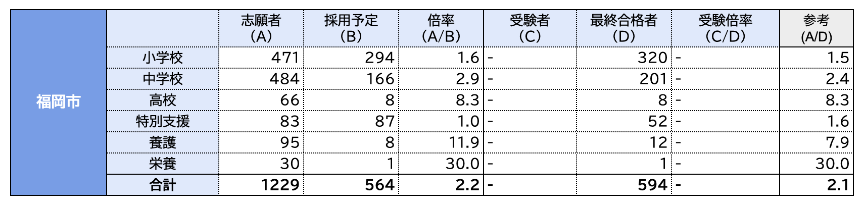 出典:令和5年度福岡市立学校教員採用候補者選考試験第2次試験合格者